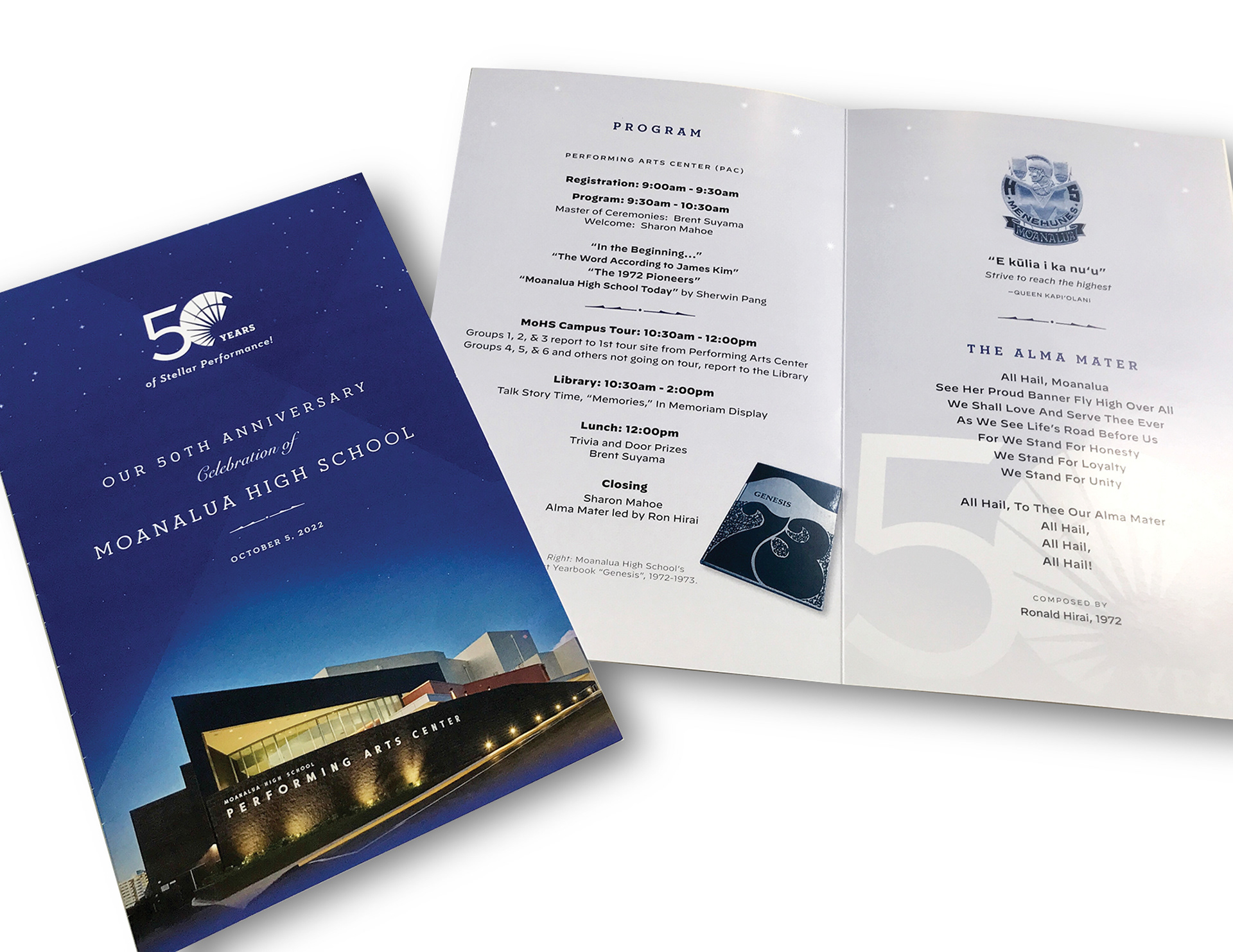 The 50th Anniversary Celebration of Moanalua High School was a memorable event in 2022, marking five decades of educational excellence and community spirit. Alumni, students, faculty, and friends gathered to honor the school's rich history and achievements. The celebration featured nostalgic reflections, inspiring speeches, and joyous reunions, showcasing the lasting impact of Moanalua High School on countless lives. It was a heartfelt tribute to a proud past and a promising future.