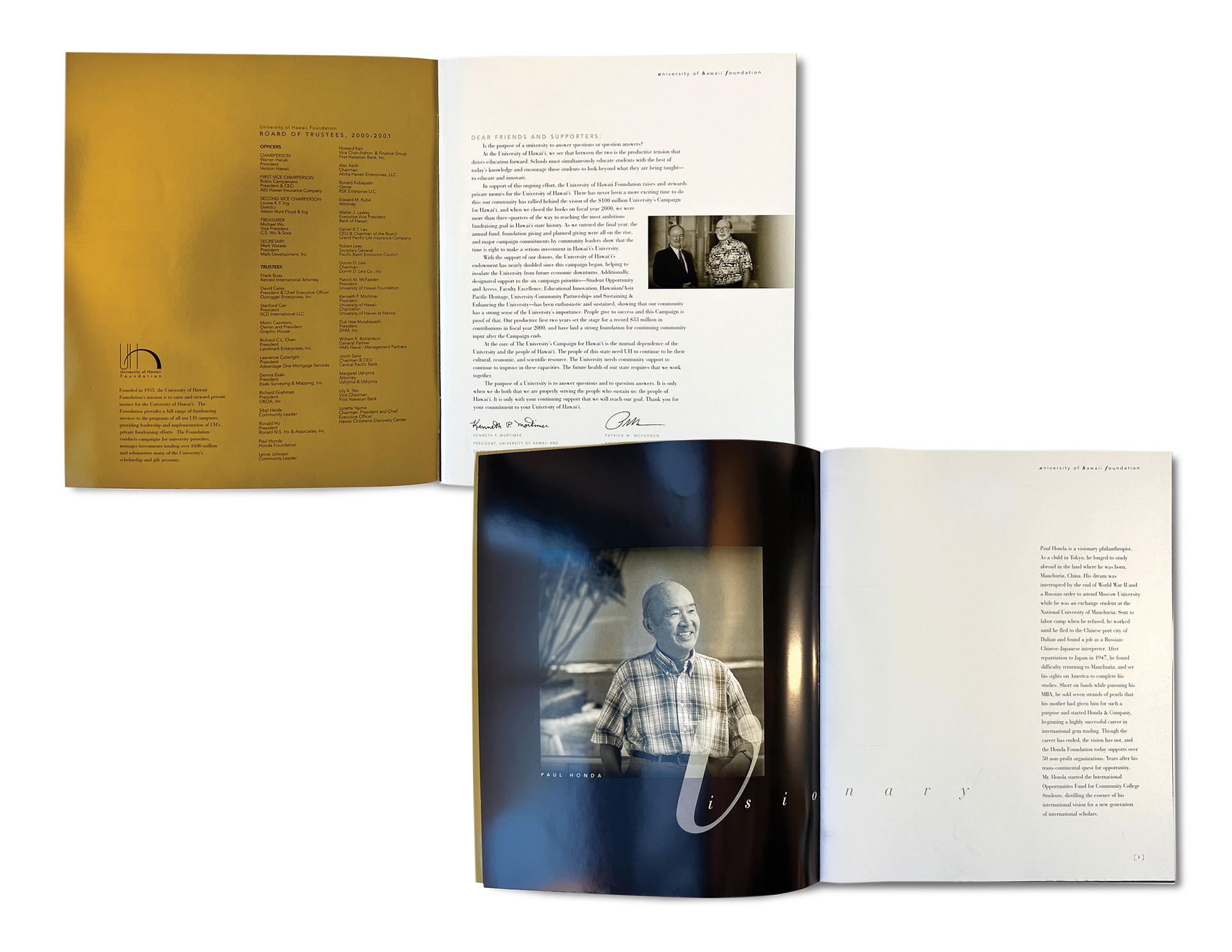Client: UNIVERSITY OF HAWAII FOUNDATION Account Director: DEBY CHOCK Art Director/Designer: CARRIE WEDEMEYER Photographer: DANA EDMUNDNS PHOTOGRAPHY Printer: EDWARDS ENTERPRISES